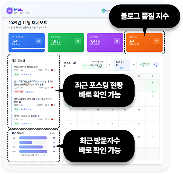 블로그 최적화 관리 현황 확인용 플랫폼 광고주 어드민 제공